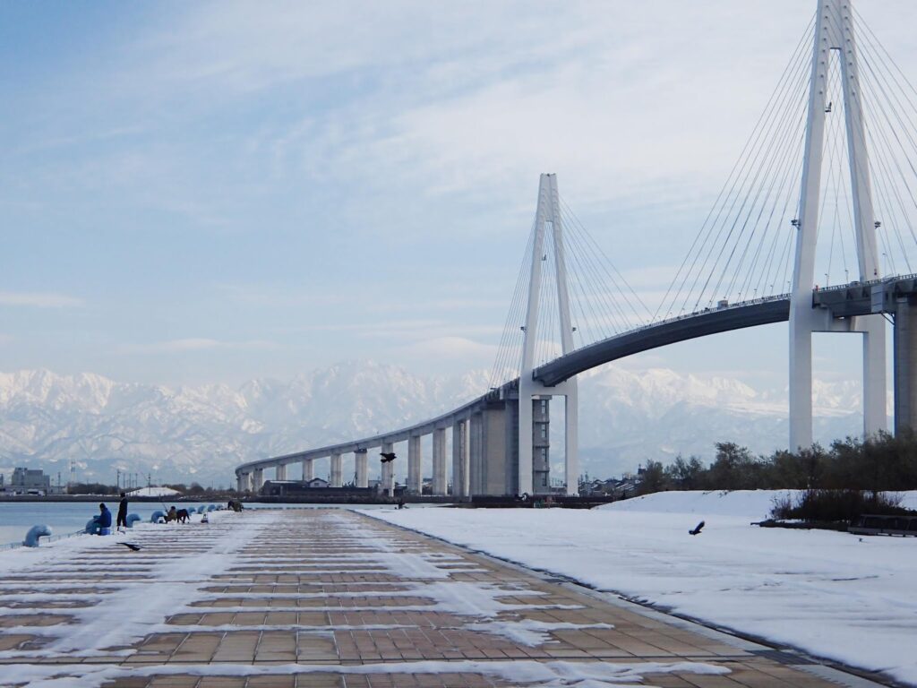 そして、もし滞在中に「冬の晴れ間」に出会えたなら、それはこの上ない幸運です。 灰色の雲が奇跡のように割れ、真っ白に雪化粧した立山連峰がその姿を現すことがあります。内川の風景の向こうに、天を突くようにそびえ立つ神々しいまでの稜線。それは、私たち地元民でさえ思わず手を合わせたくなるほど圧倒的で、言葉を失う美しさです。この「冬の立山連峰」を拝めるのは、寒さに覚悟を決めた旅人だけに贈られる最高のご褒美。出会えた方は、本当にラッキーだと言わざるを得ません。